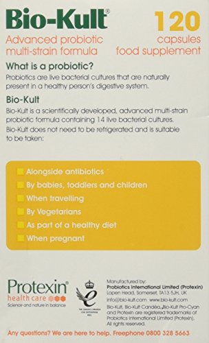 Bio-Kult is a multi-strain probiotic containing 14 strains of probiotics for everyday use. The beneficial bacteria in Bio-Kult are cry protected during the freeze drying process which means they are protected from the harsh acid environment of the stomach and are therefore able to colonies the full length of the gastrointestinal tract…